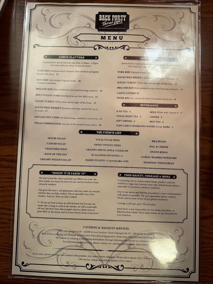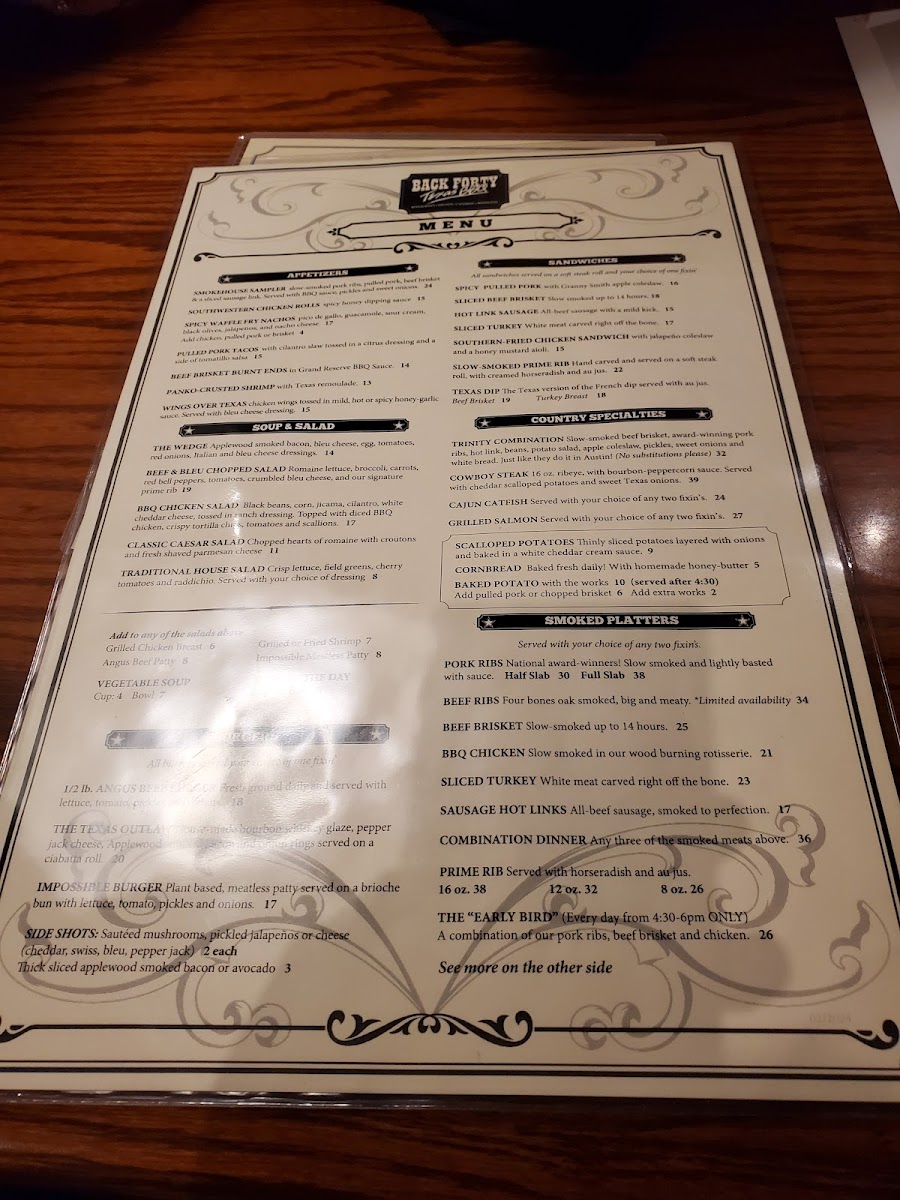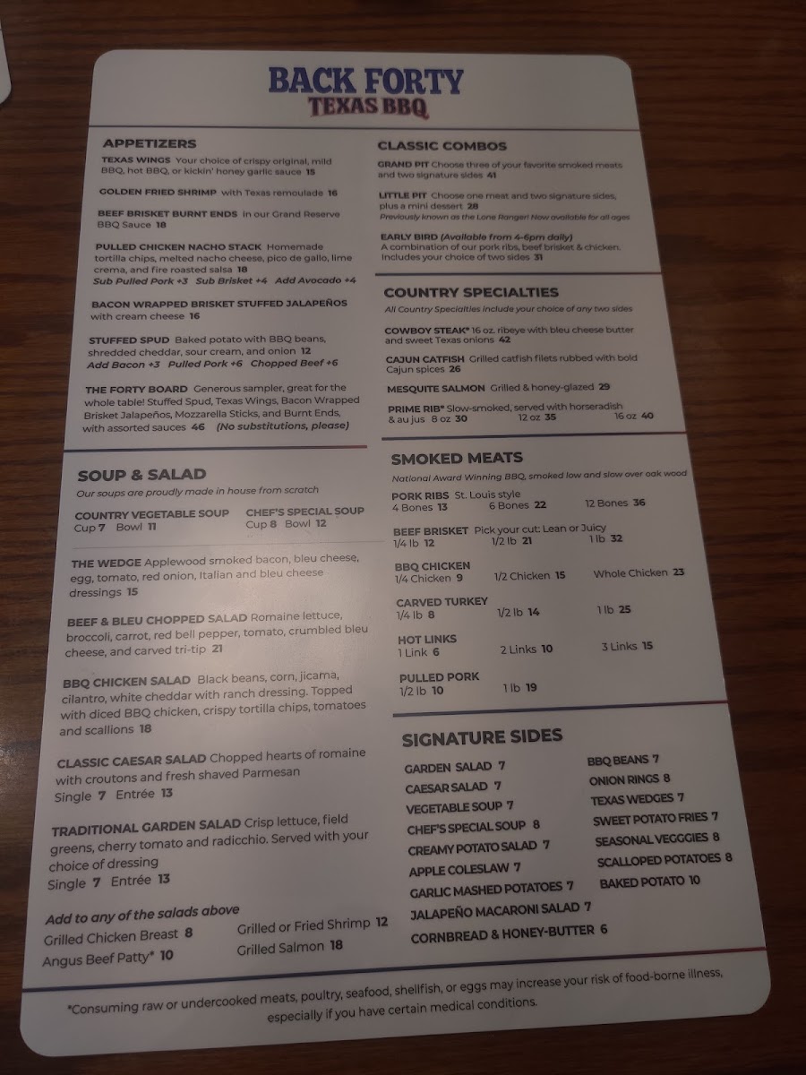 Back Forty Texas BBQ Roadhouse & Saloon Menu
