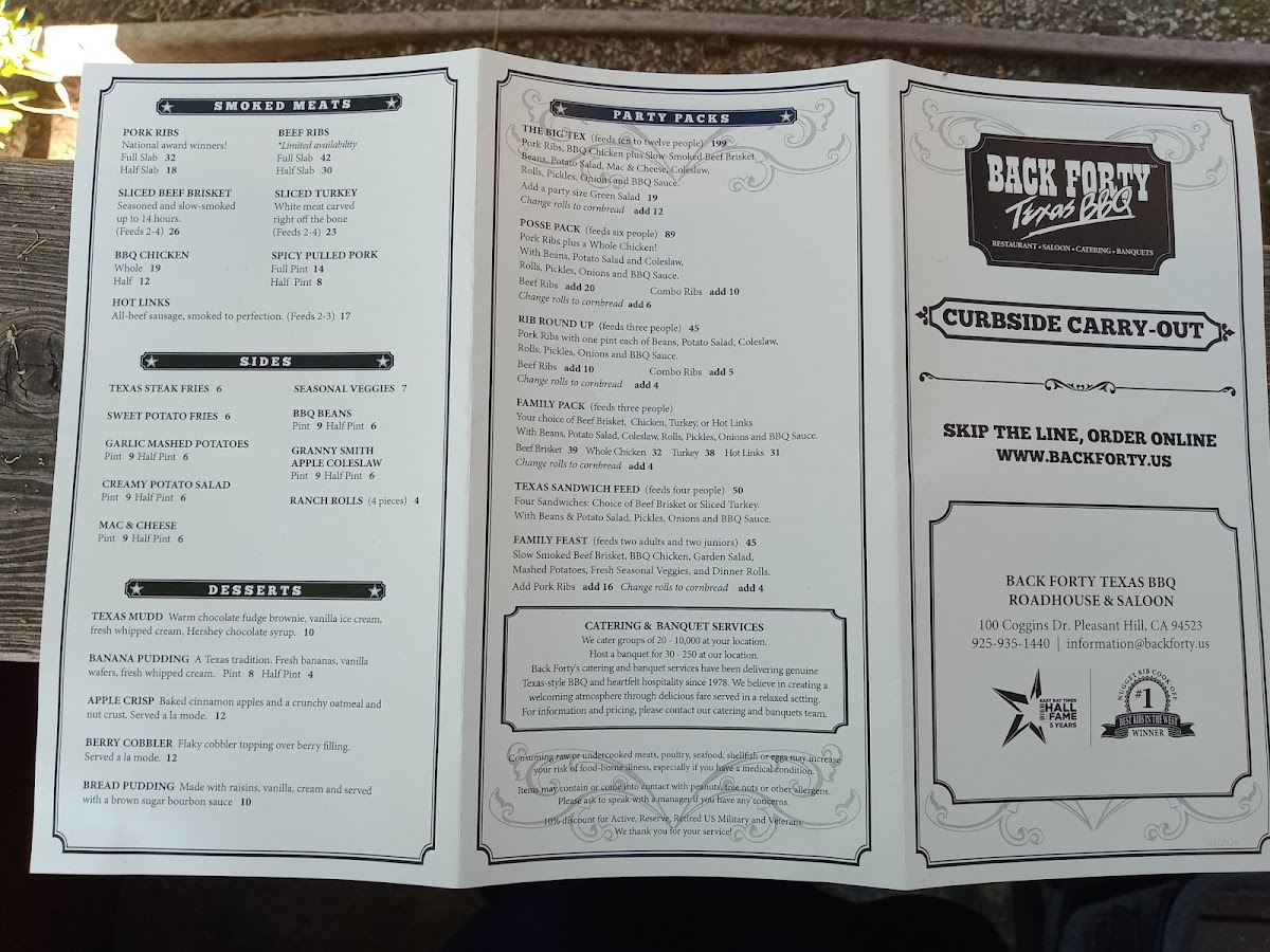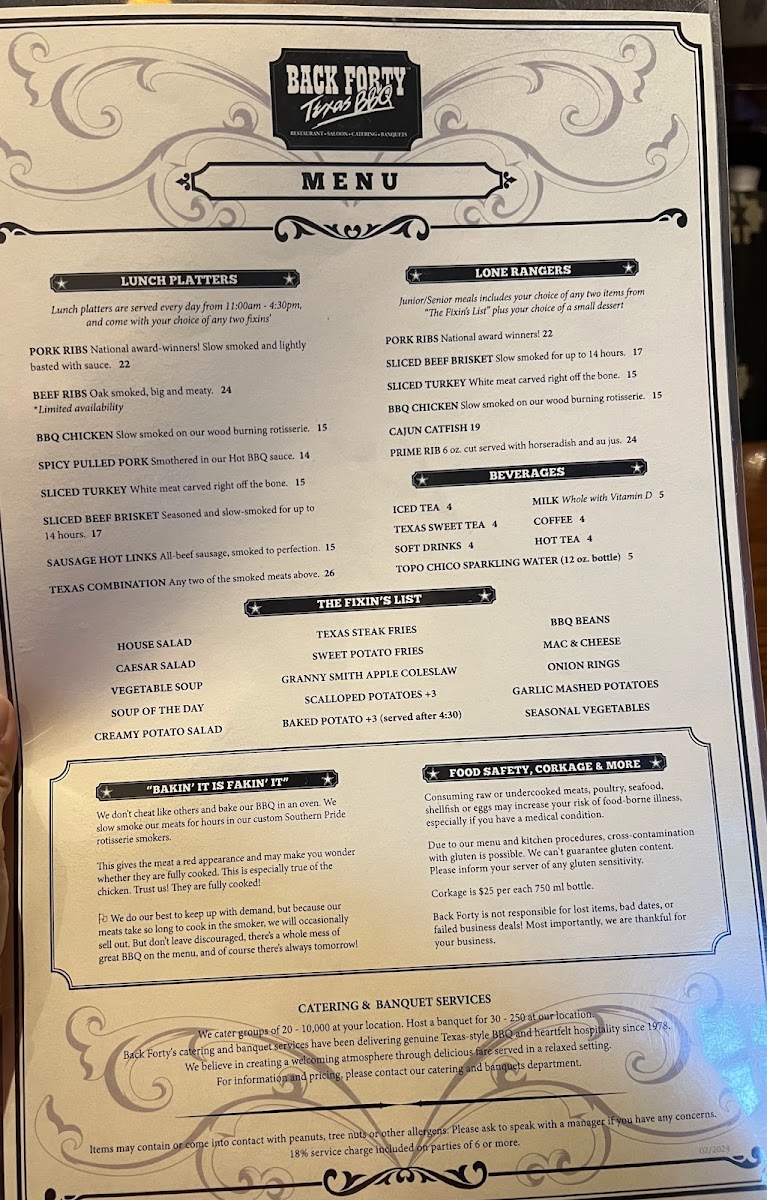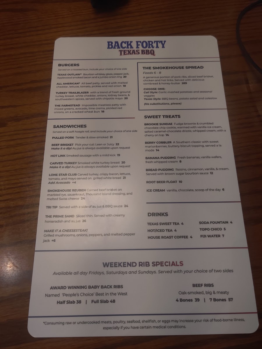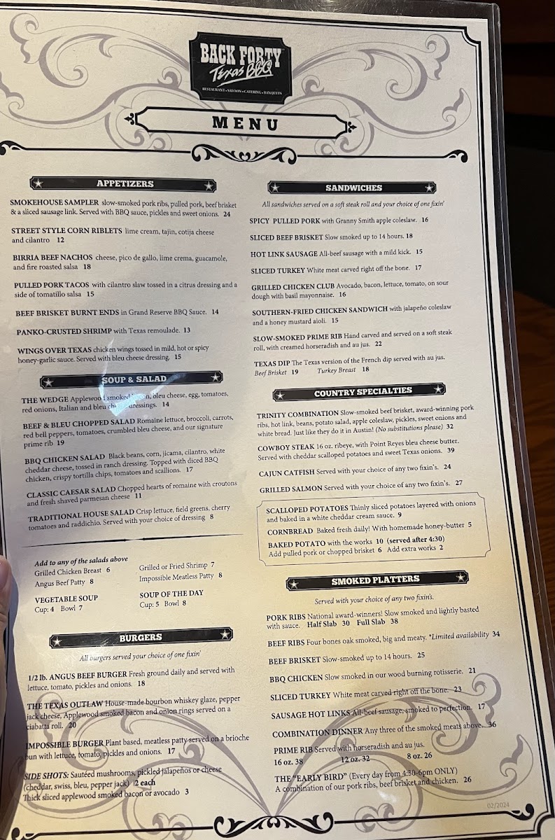 Back Forty Texas BBQ Roadhouse & Saloon Menu